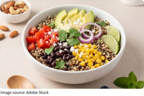 These ingredients provide a balanced combination of protein, fiber, and fresh flavors, giving lunch a satisfying and colorful appeal.