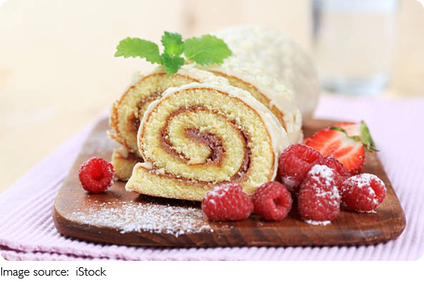 A Swiss roll looks delicate on the outside, but slicing into it reveals a perfect spiral of soft sponge and creamy filling.