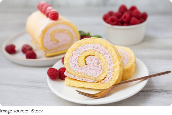 The sponge is the foundation of a Swiss roll, and its texture determines how easily it can be rolled later.